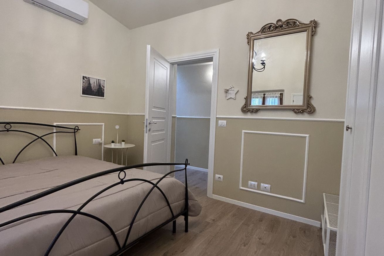 Entering the house through the security door, we immediately find on the left the bathroom complete with shower and bidet; on the right we have the spiral stairs (43cm wide) that lead to the room in the mezzanine (maximum height 180cm going down) where we find a desk for working and a single bed which on request can be prepared as a double bed;